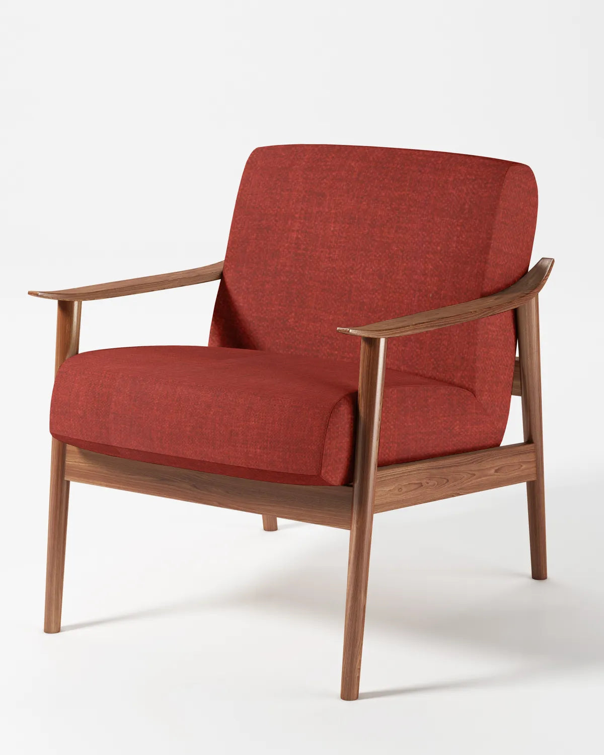 Rich red woven polyester fabric with smooth matte texture, bold and vibrant for interiors.