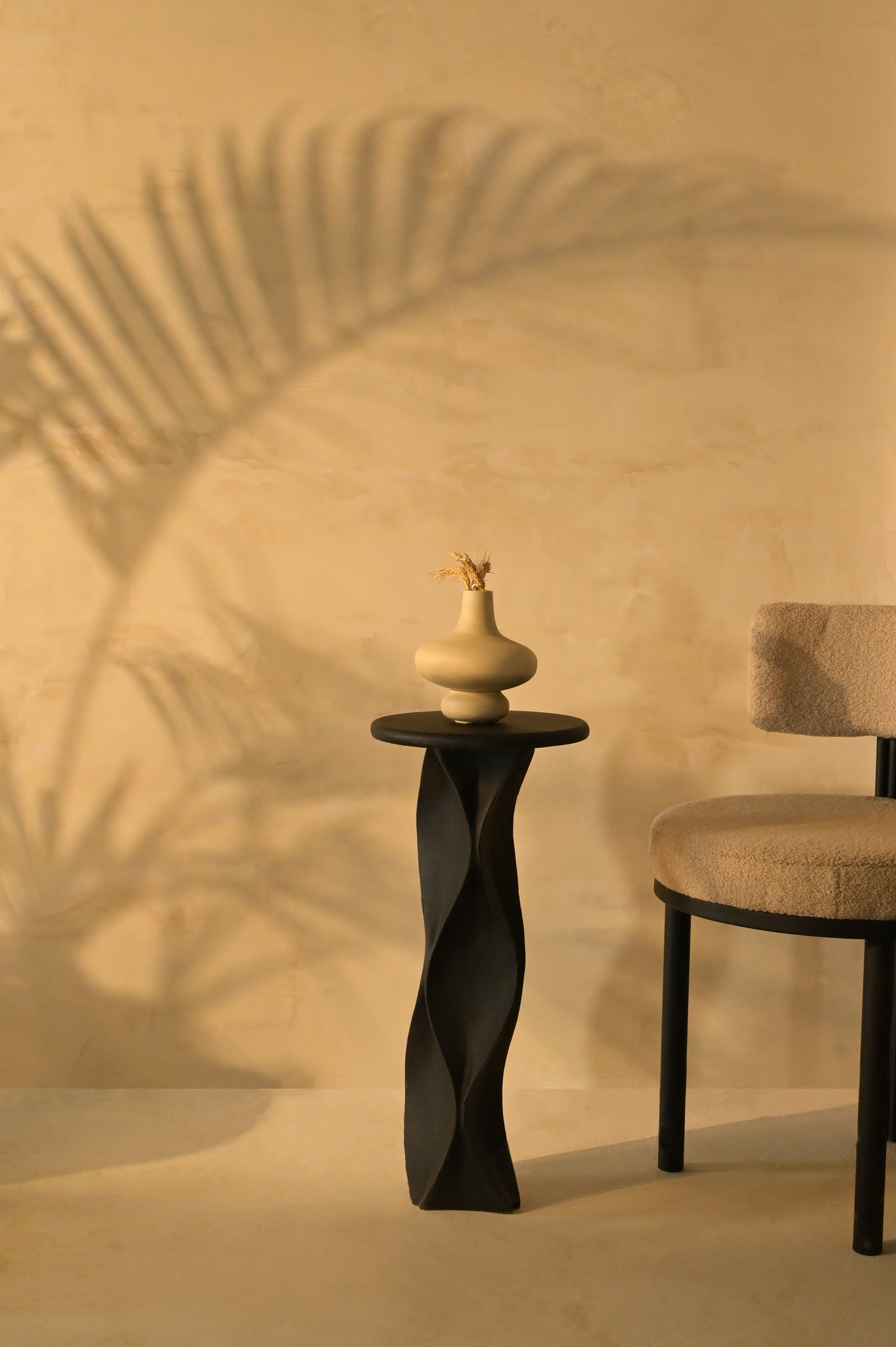 Sinuous and sculptural, the Celeste Table rises like a column caught in motion. With a twisted base and quiet matte finish, it captures light and shadow in gentle waves. An artful accent that holds its own in any setting.