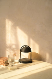 The Mirth Table Lamp exudes industrial elegance with its contemporary form and hue. Crafted to add a soft, ambient glow, it brings sophistication to any space, subtle yet striking in form.