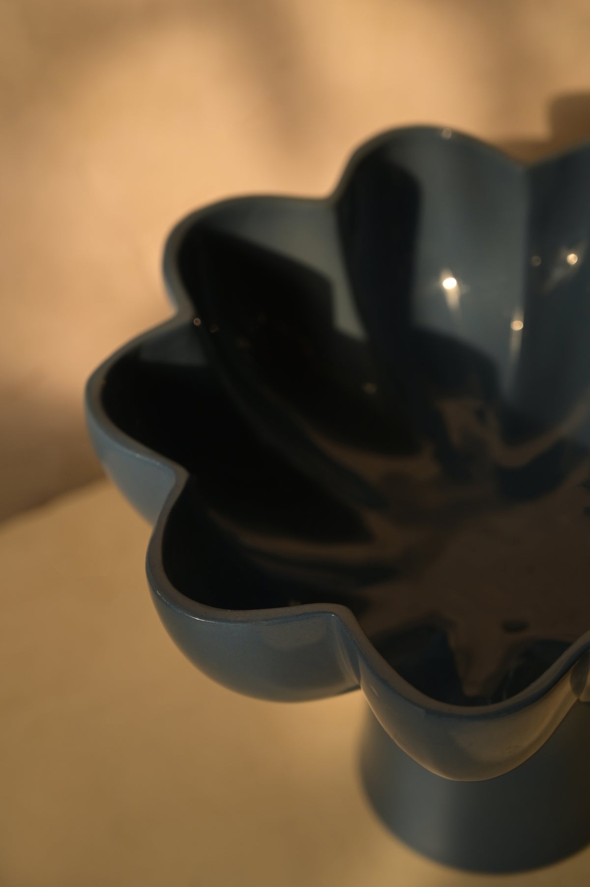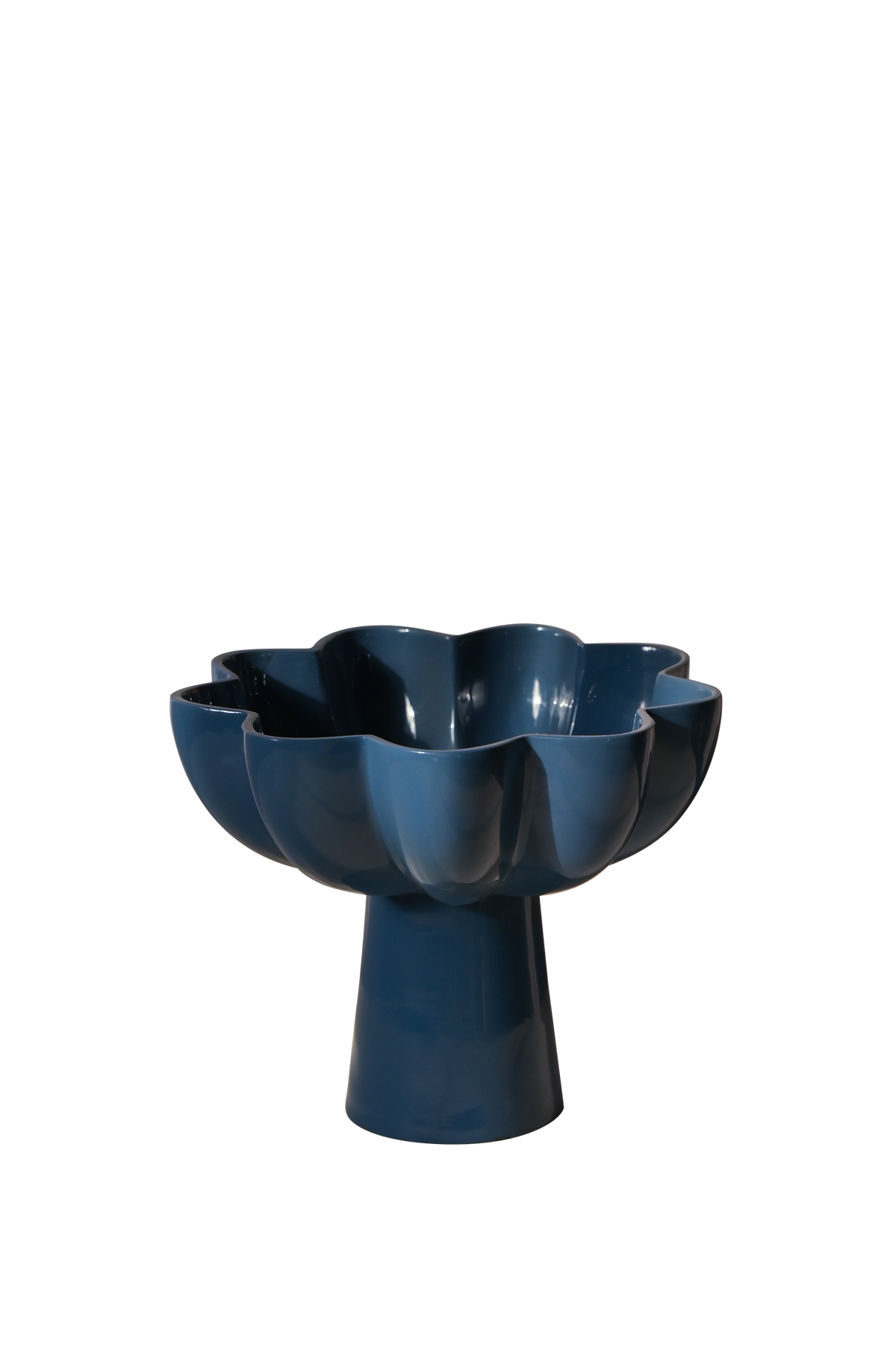 Crafted from metal in an enamelled blue hue, this footed bowl is perfect to hold your treats when entertaining or serve as fresh tabletop decor when filled with water and flowers.