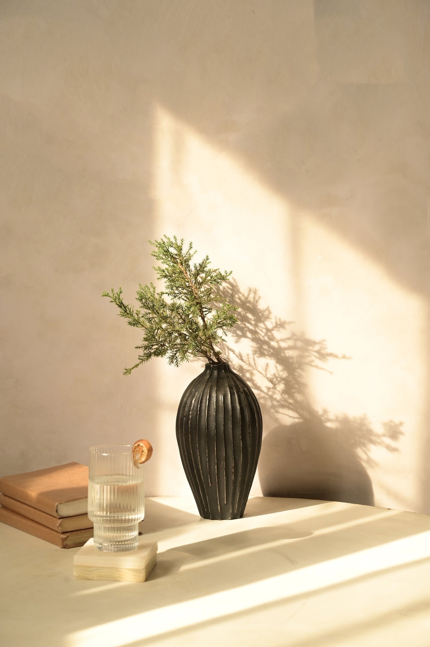 A blend of symmetry and function, this sculptural vase brings an understated elegance to your spaces - whether styled solo or filled with blooms.