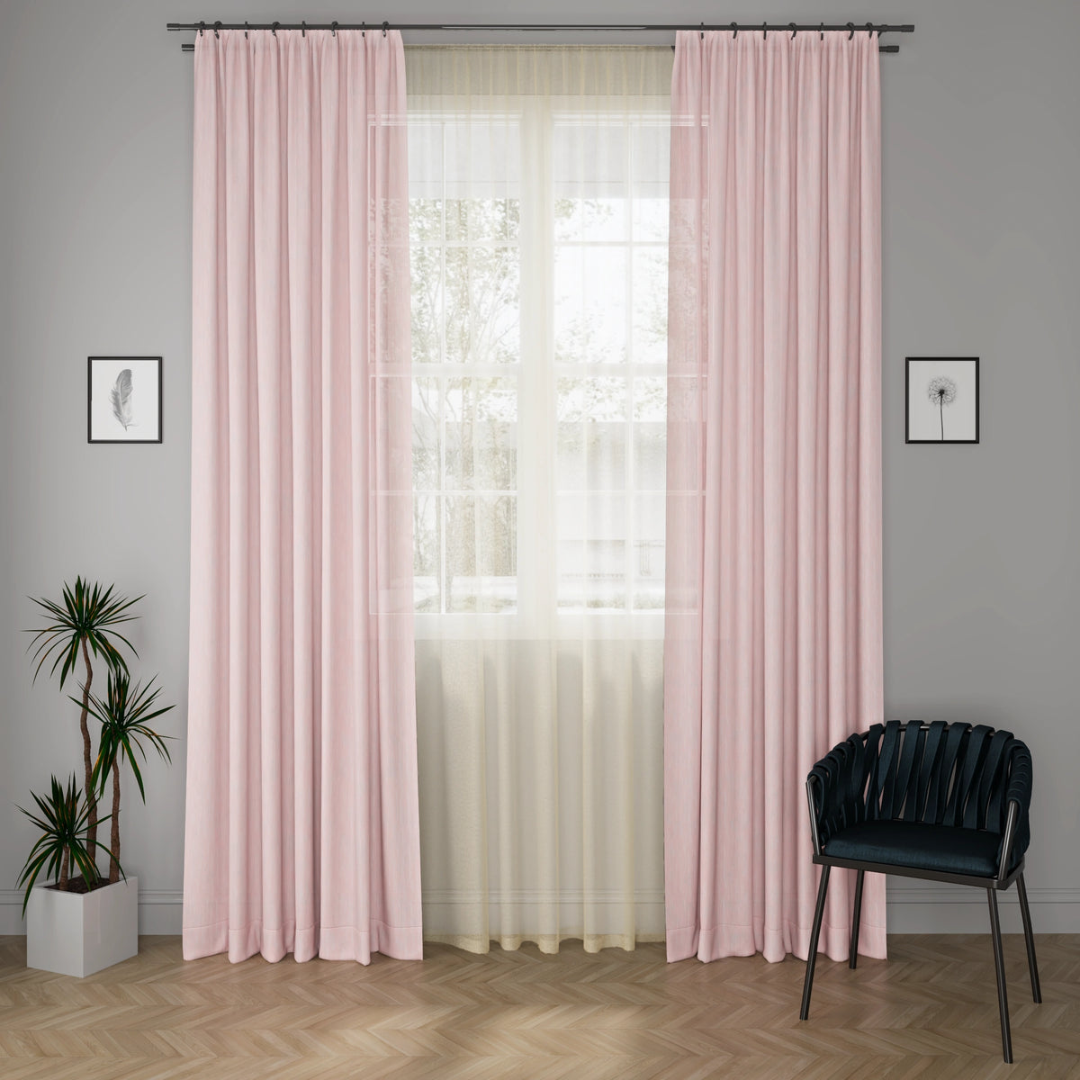 A high quality polyester sheer drapery in a muted mauve tone with a gentle textured finish.