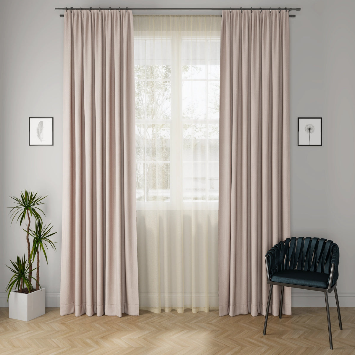A premium linen-blend drapery in a warm Stone shade, combining durability, natural texture, and an elegant fall.