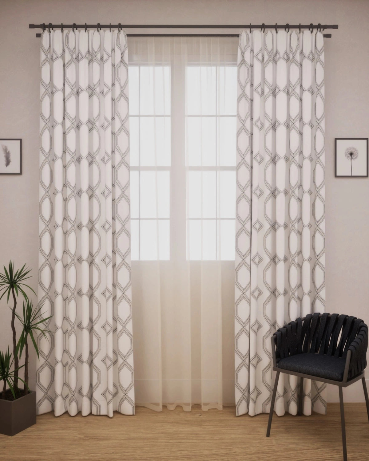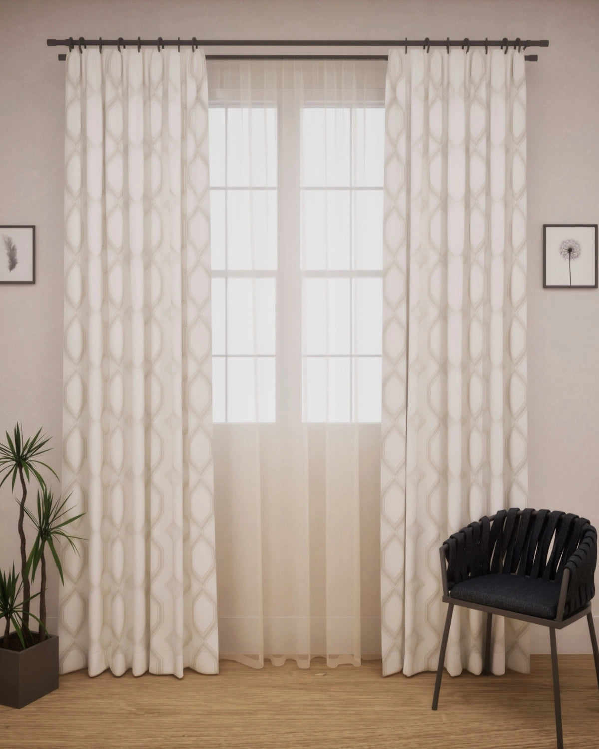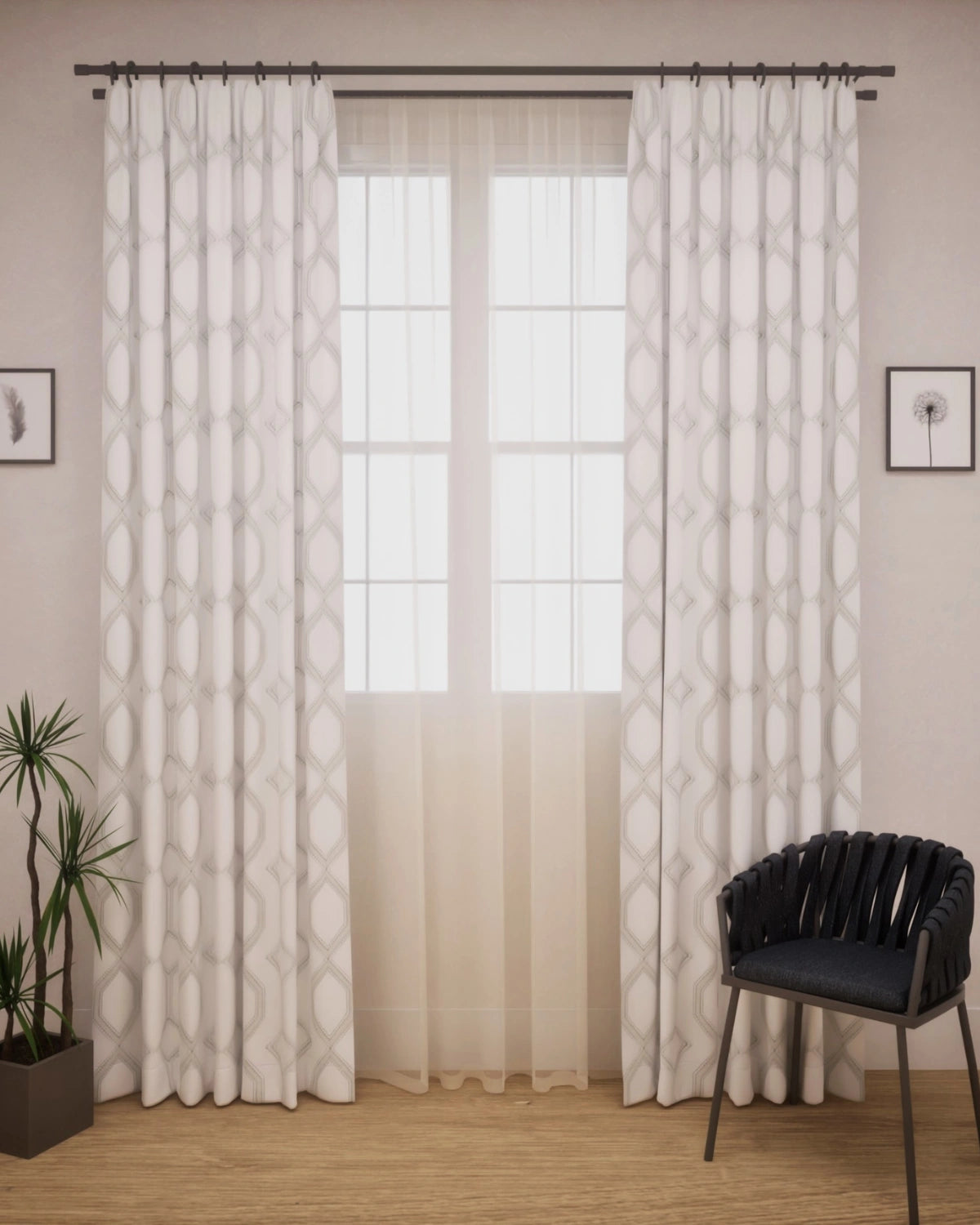 Diamond/Geometric cotton-rayon-zari blend fabric, perfect for drapery and bedding.