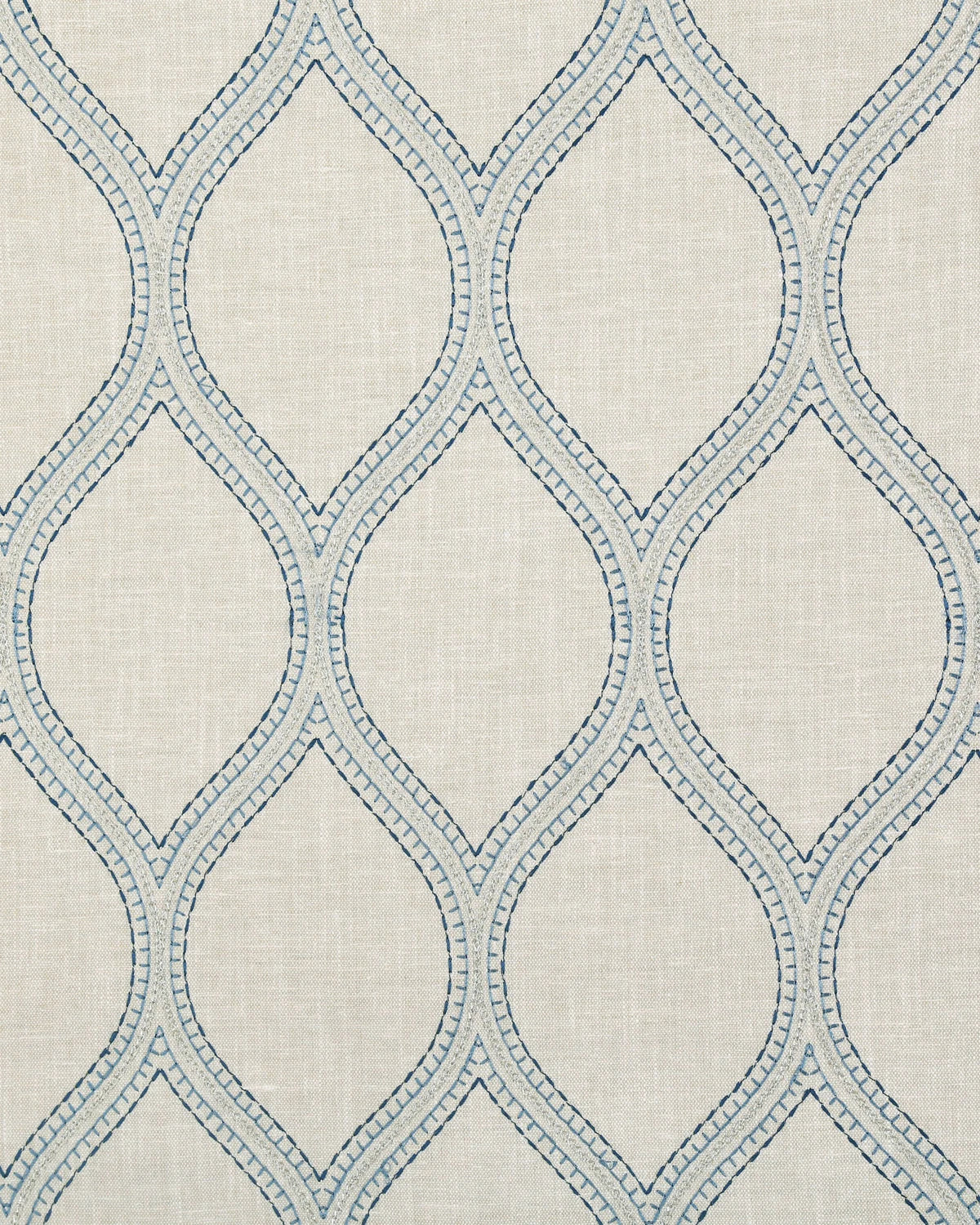 Ogee cotton-poly-linen-rayon-zari blend fabric, perfect for drapery and bedding.