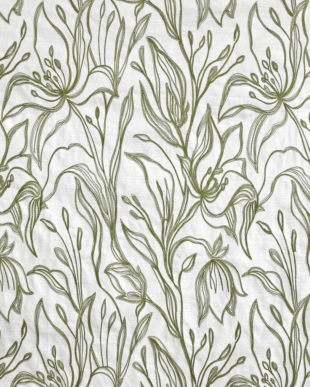 Floral cotton-rayon fabric, perfect for drapery and bedding.