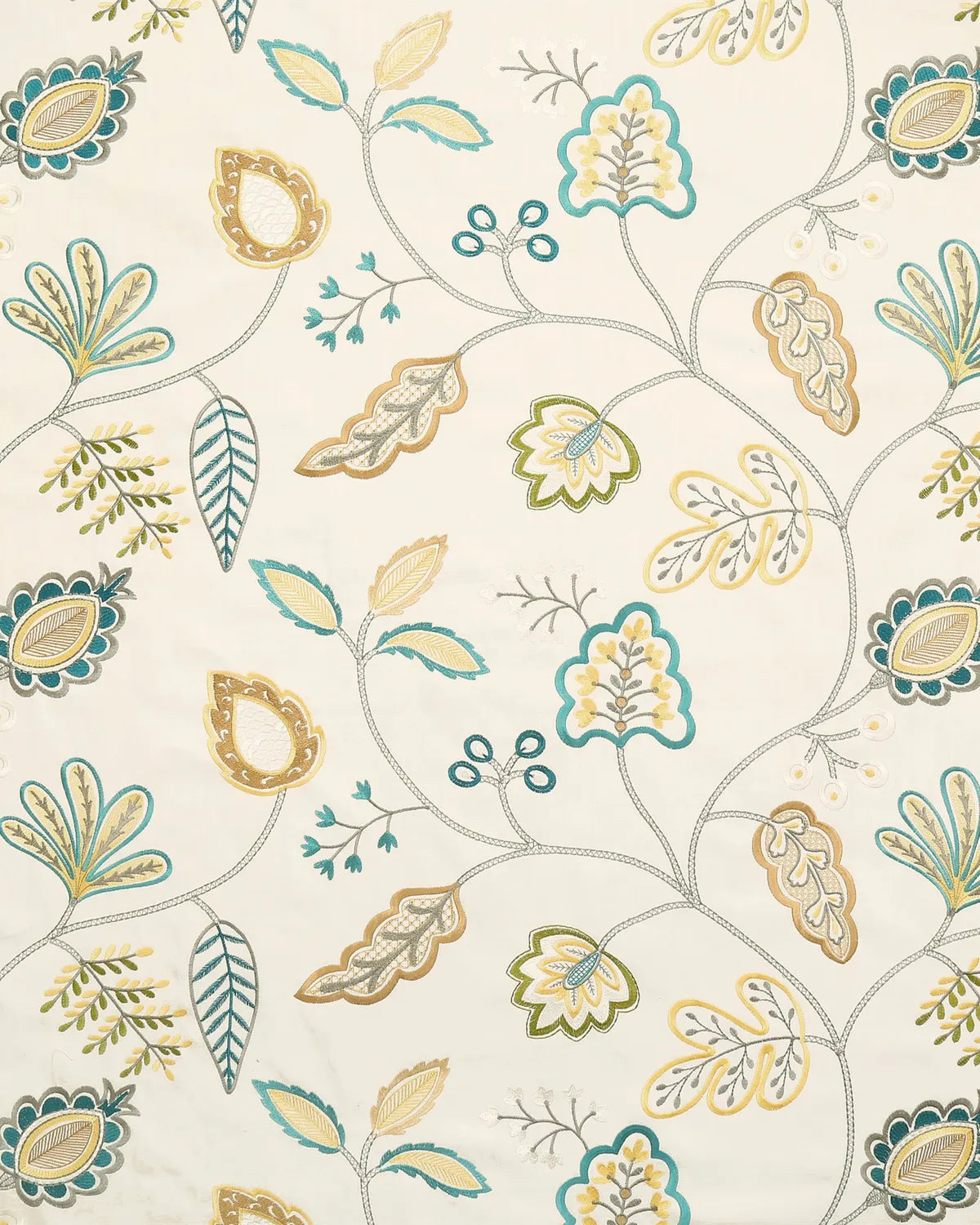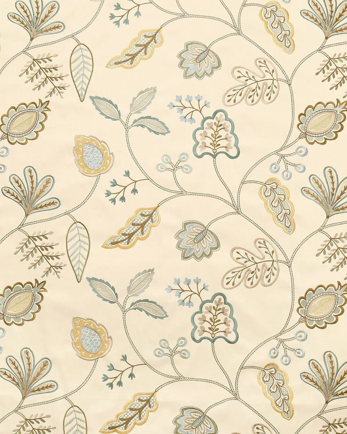 Floral cotton jacquard fabric, perfect for drapery and bedding.