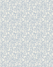 Airy powder-blue scroll wallpaper for elegant classic interiors.