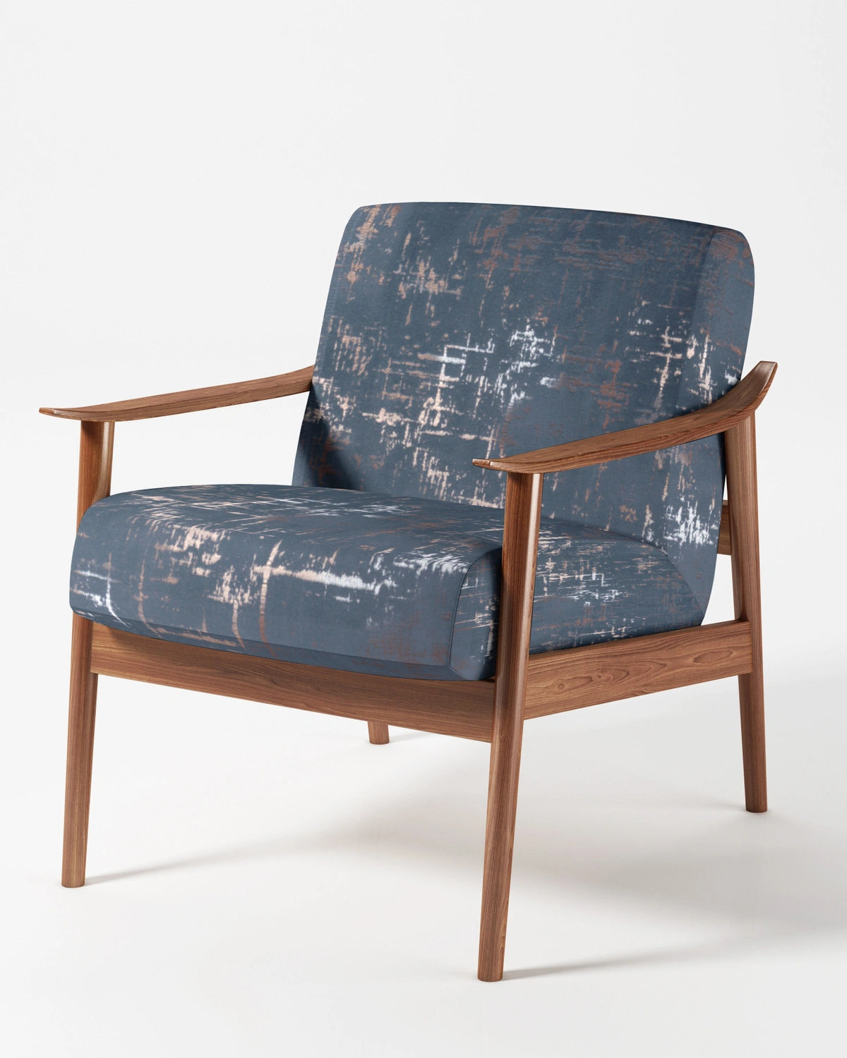Textured abstract patterned woven upholstery fabric in refined riviera blue tone.