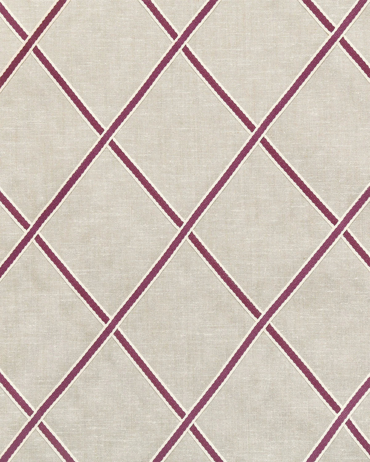 Lattice/diamond cotton-blend fabric perfect for drapery, bedding, and upholstery.
