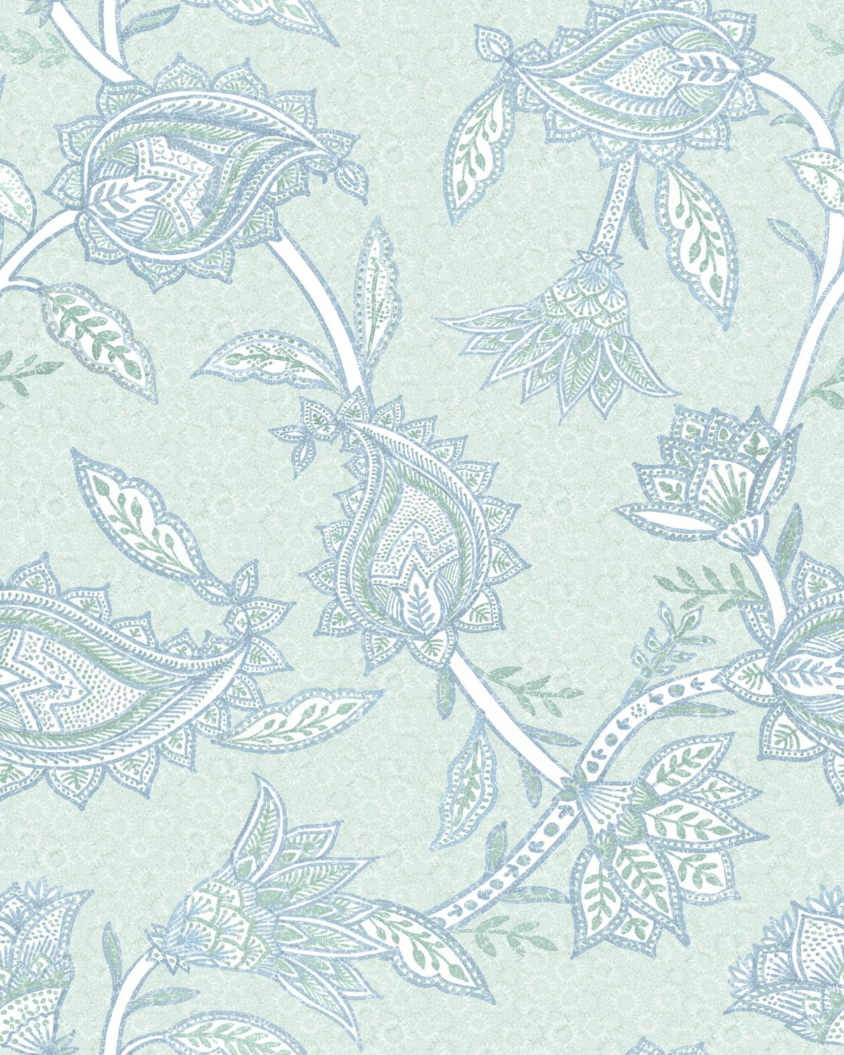 Boho Indian Paisley Wallpaper – Pale Teal Blue