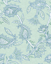 Vintage-inspired paisley wallpaper in teal blue and ivory — creates a refreshing heritage look.
