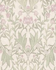 Morris Floral Damask & Leaves Wallpaper – Ivory Pink