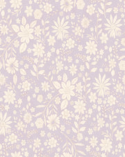 Delicate linen-textured floral wallpaper in ivory lavender — romantic and light.