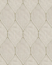 Ogee/Dot style cotton-linen-rayon blend embroidery, refined yet versatile, ideal for drapery and bedding.