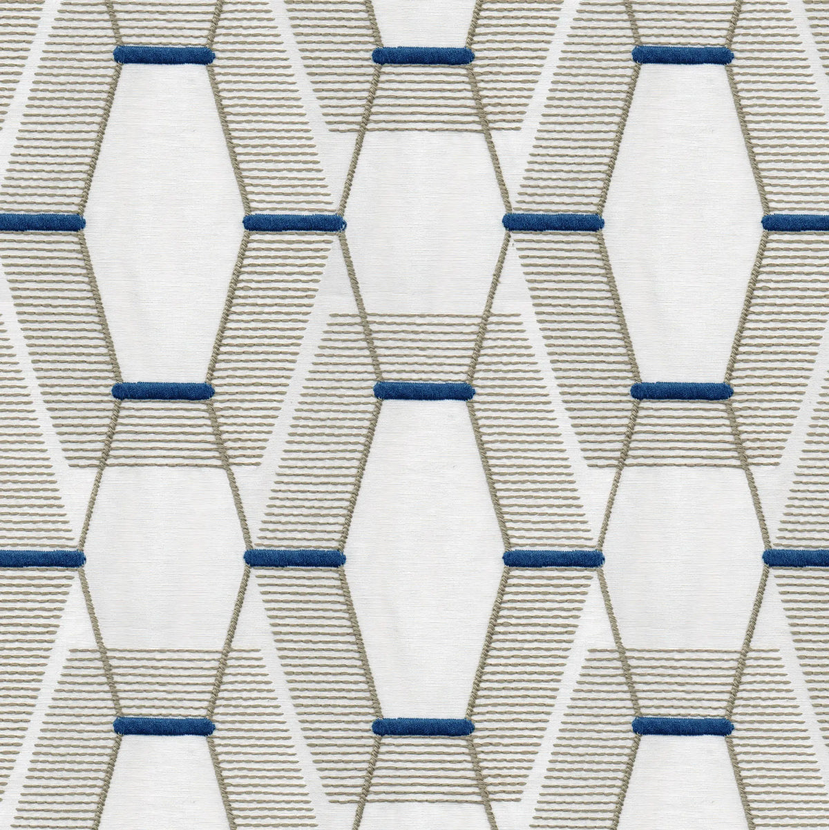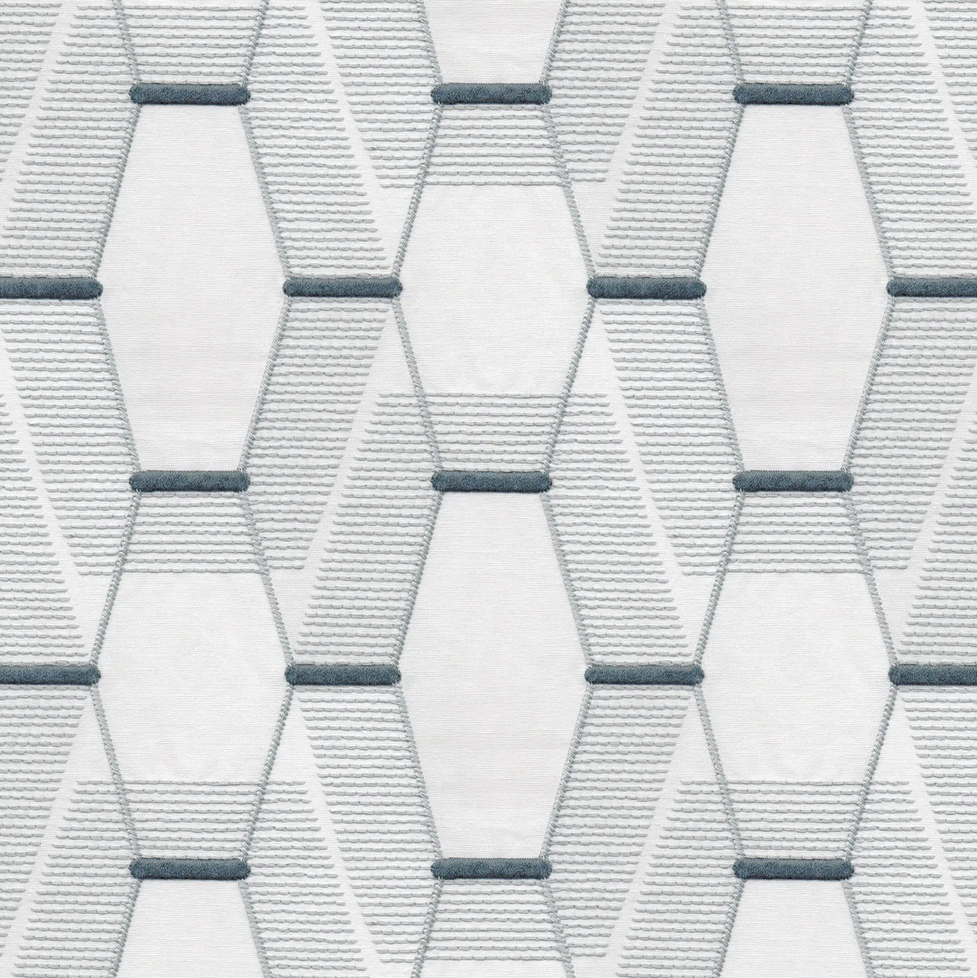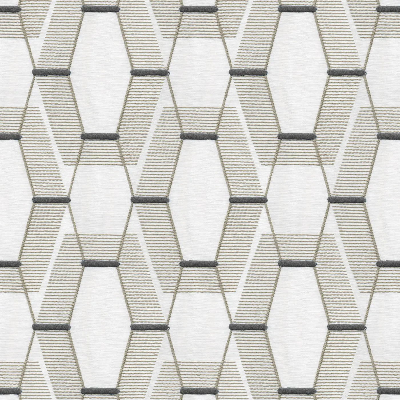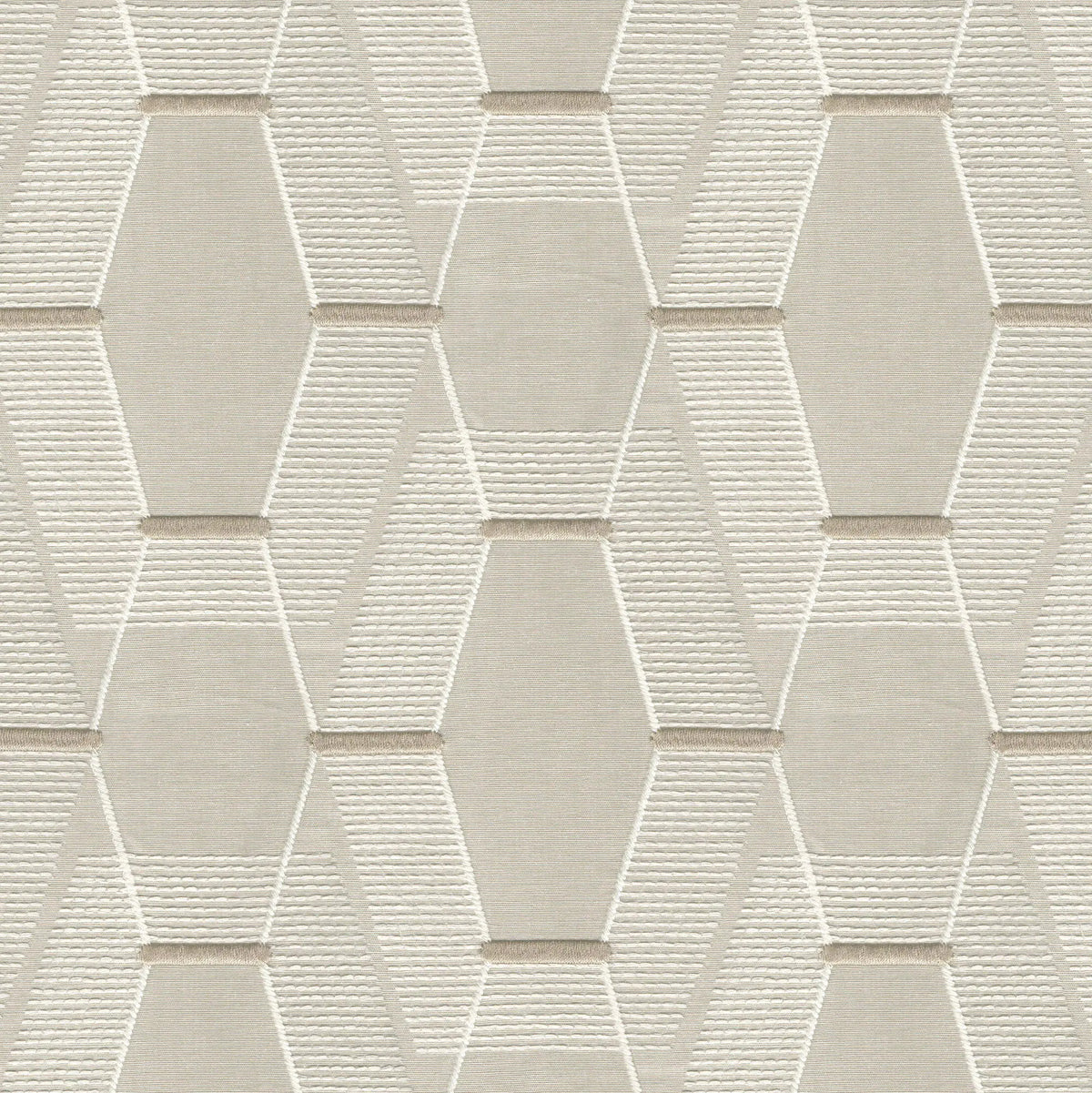 Geometric cotton-poly embroidery with subtle SKR weave, modern & versatile.